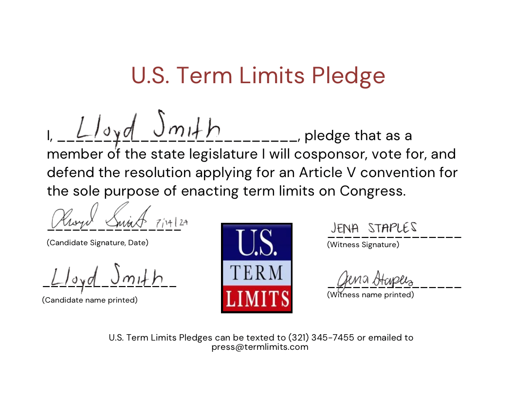 Lloyd Smith Pledges to Support Congressional Term Limits