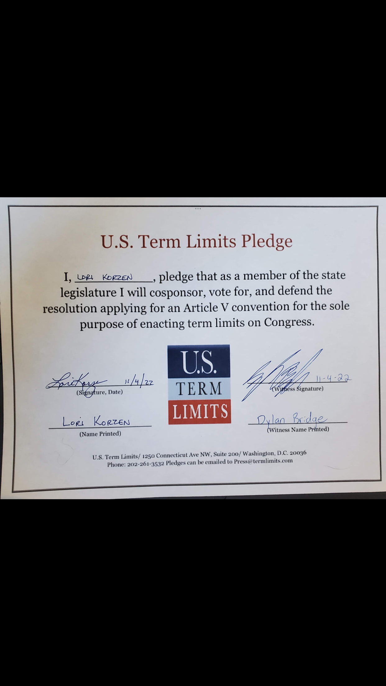 USTL President, Philip Blumel, commented on Korzen’s pledge saying, “Lori’s support of term limits shows that there are individuals who are willing to listen to the majority of voters who want term limits. America needs a Congress that will be served by citizen legislators, not career politicians.”