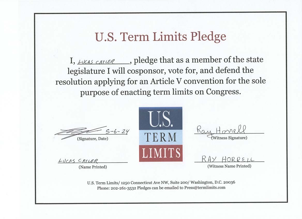 Lucas Cayler Pledges to Support Congressional Term Limits