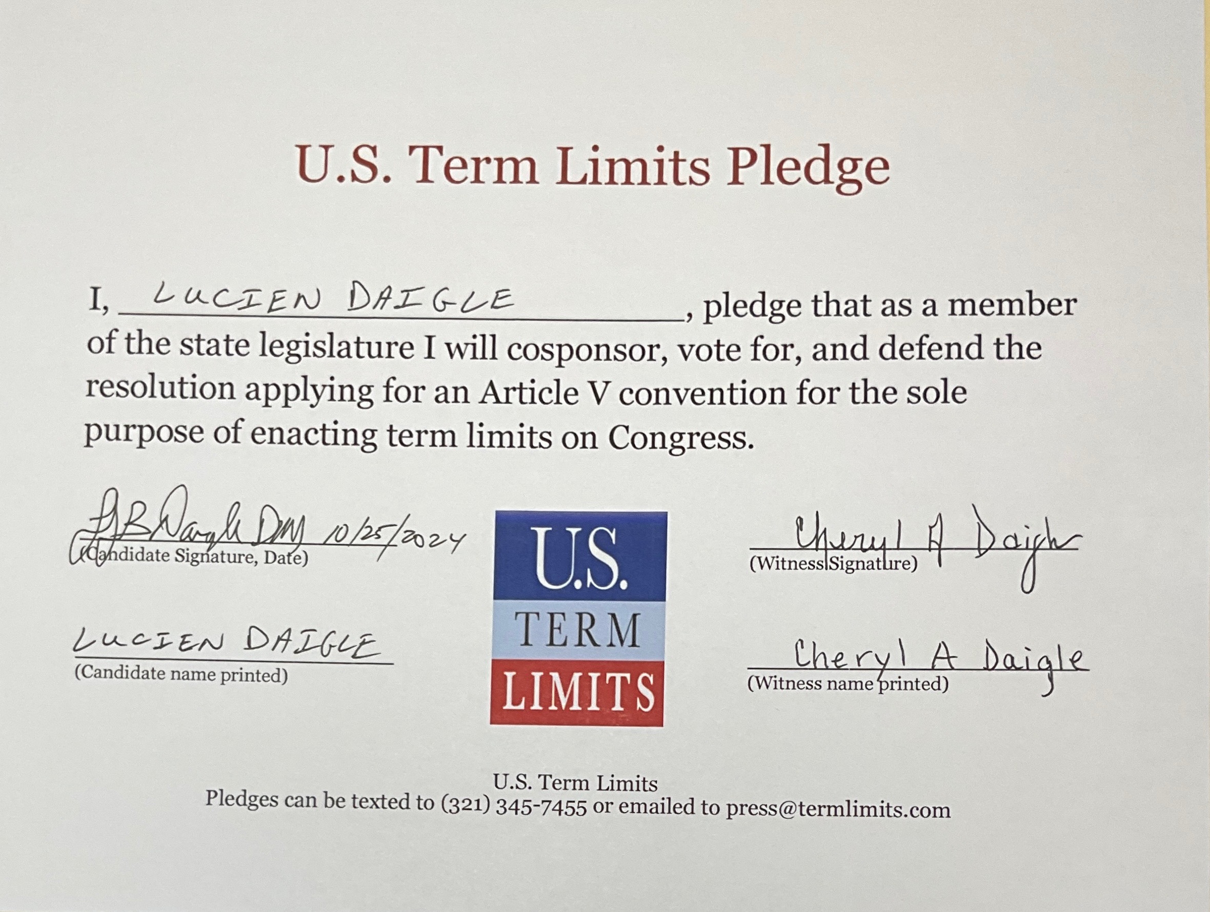 Lucien Daigle Pledges to Support Congressional Term Limits