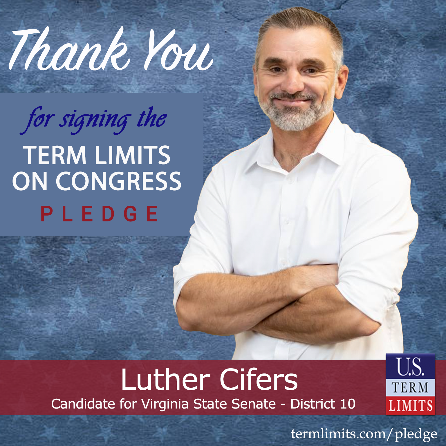 Powhatan, VA – U.S. Term Limits (USTL), the leader in the national, non-partisan movement to limit terms for elected officials, is gathering support from state lawmakers across the nation. Its mission is to get 34 states to apply for an amendment proposal convention specific to term limits on Congress. 2025 Virginia state senate candidate, Luther Cifers (district 10), has committed support for term limits on Congress by signing the term limits convention pledge. Previously, candidate Jack Trammell also signed the pledge. The primary special election is scheduled for January 7, 2025.