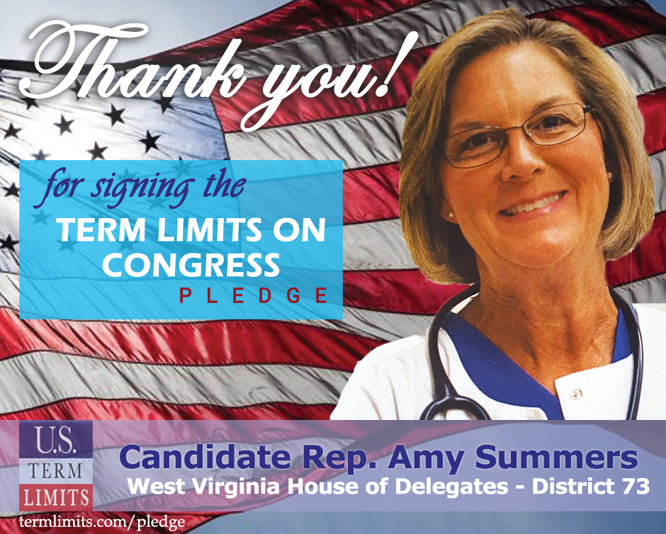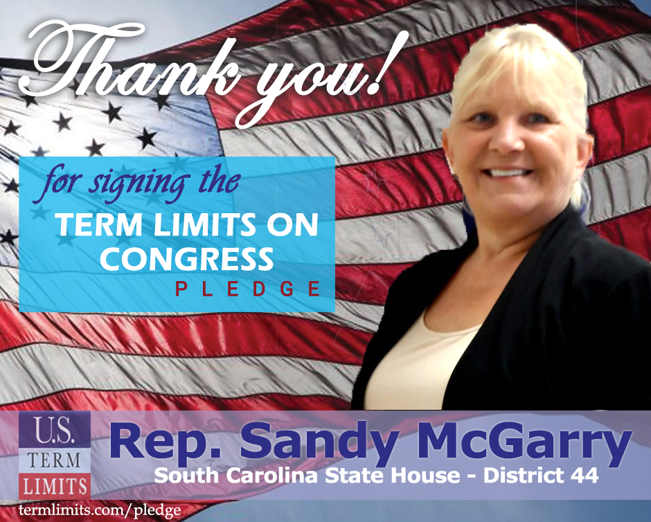 The U.S. Term Limits pledge is provided to candidates and members of state legislatures. It reads, “I pledge that, as a member of the state legislature, I will cosponsor, vote for, and defend the resolution applying for an Article V convention for the limited purpose of enacting term limits on Congress.”