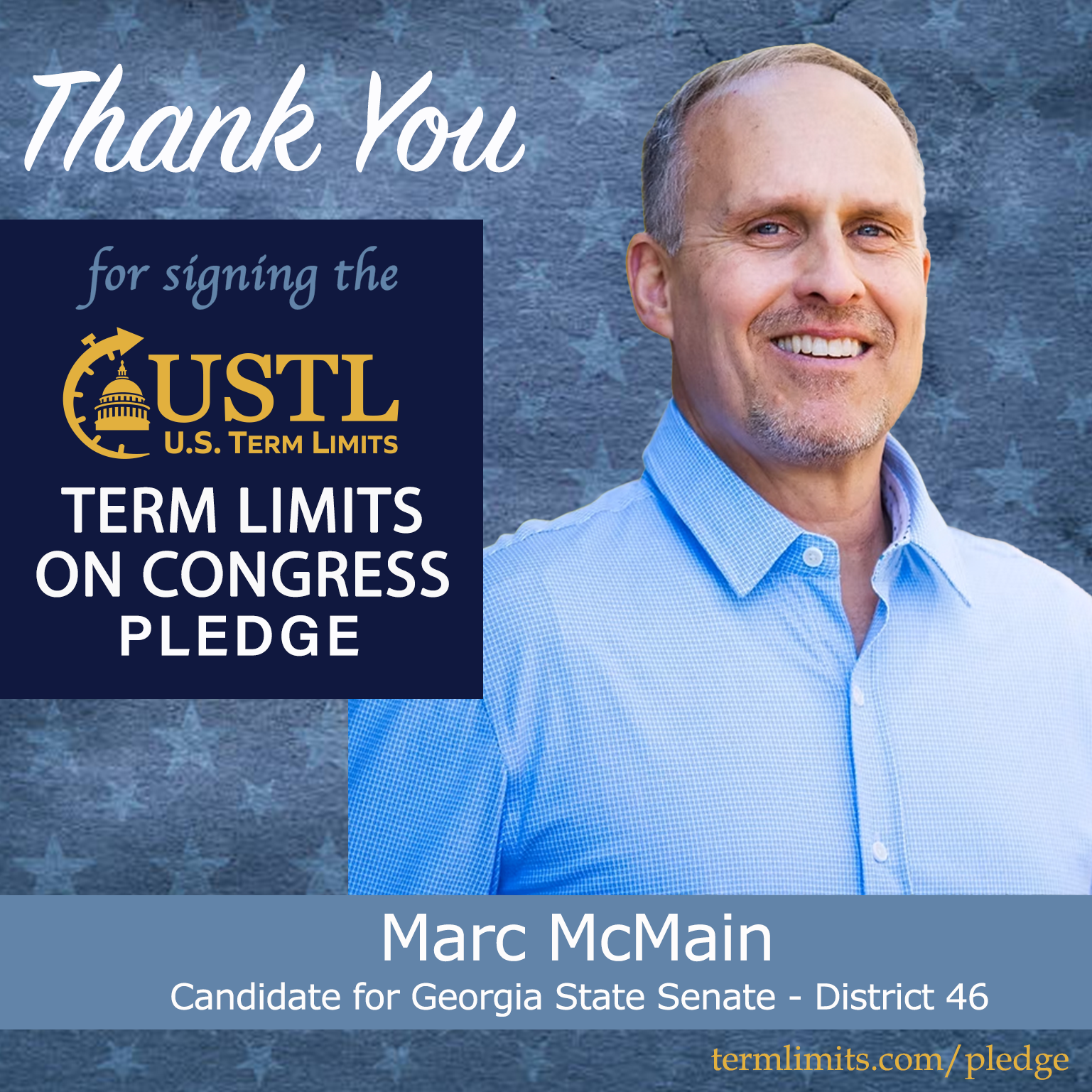 Watkinsville, GA – U.S. Term Limits (USTL), the leader in the national, non-partisan movement to limit terms for elected officials, is gathering support from state lawmakers across the nation. Its mission is to get 34 states to apply for an amendment proposal convention specific to term limits on Congress. 2026 Georgia state senate candidate, Marc McMain (district 46), has committed support for term limits on Congress by signing the term limits convention pledge. Previously, candidates William Gaulden, Doug McKillip and Steven Strickland also signed the pledge.
