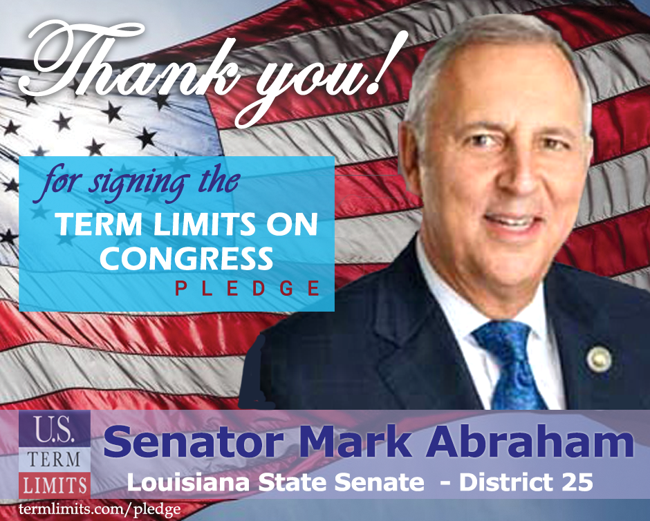 Washington, D.C. – U.S. Term Limits (USTL), the leader in the national, non-partisan movement to limit terms for elected officials, is gathering support from state lawmakers across the nation. Its mission is to get 34 states to apply for an amendment proposal convention specific to term limits on Congress. Louisiana state Senator Mark Abraham (district 25) has committed support for term limits on Congress by signing the Term Limits Convention pledge.
