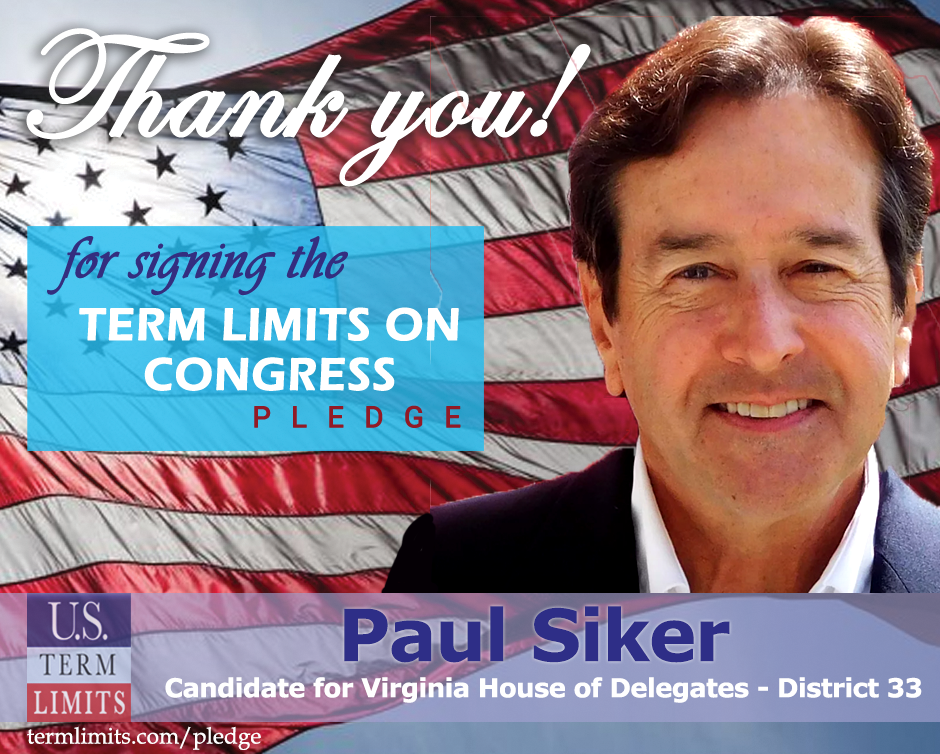 The U.S. Term Limits amendment pledge is provided to every announced candidate for federal office. It reads, “I pledge that as a member of Congress, I will cosponsor and vote for the U.S. Term Limits amendment of three (3) House terms and two (2) Senate terms and no longer limit.” The U.S. Term Limits constitutional amendment has been introduced in both the U.S. Senate by Senator Ted Cruz and his colleagues (SJR3) and the U.S. House by Representative Ralph Norman (HJR12).
