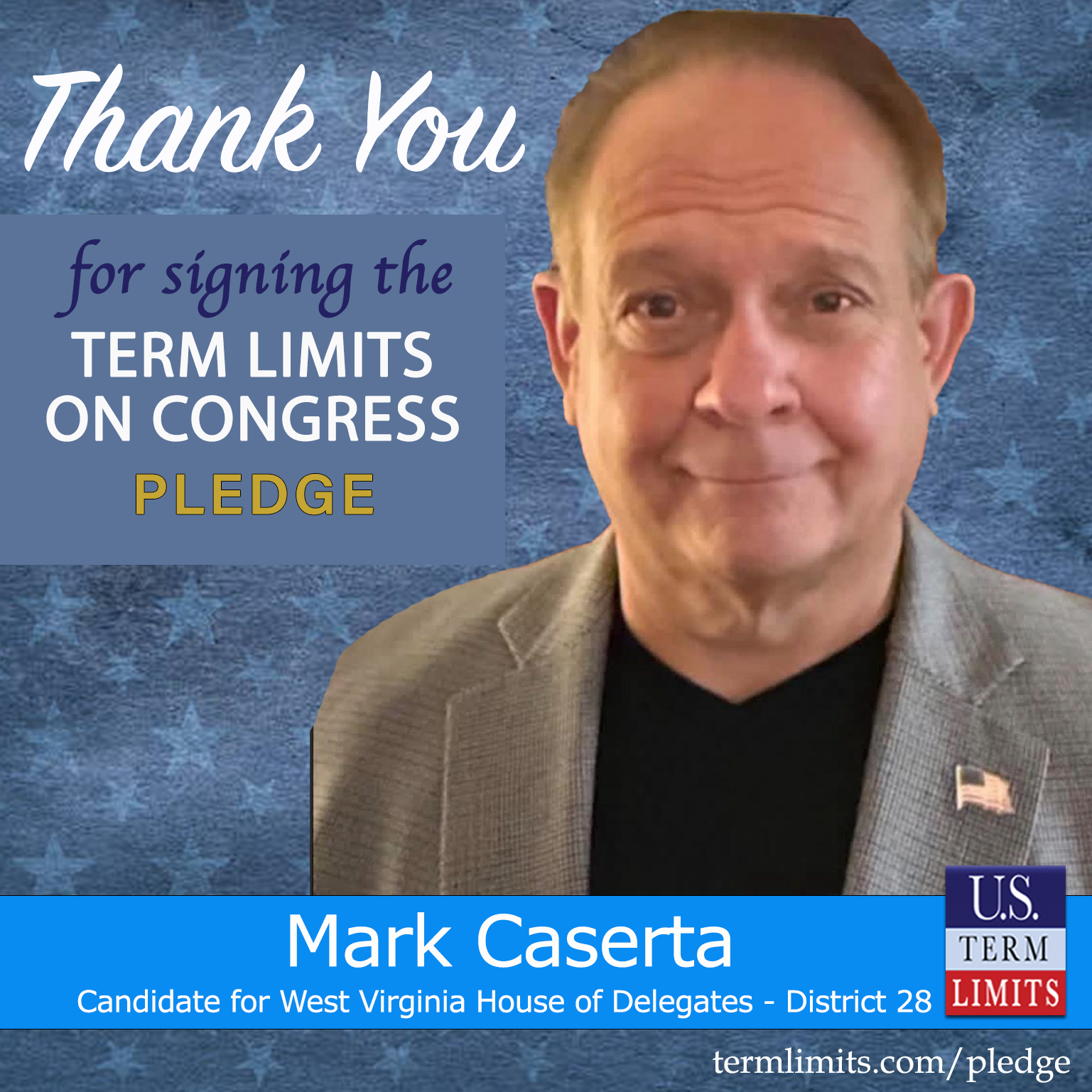 Wayne, WV – U.S. Term Limits (USTL), the leader in the national, non-partisan movement to limit terms for elected officials, is gathering support from state lawmakers across the nation. Its mission is to get 34 states to apply for an amendment proposal convention specific to term limits on Congress. 2026 West Virginia house of delegates candidate, Mark Caserta (district 28), has committed support for term limits on Congress by signing the term limits convention pledge.