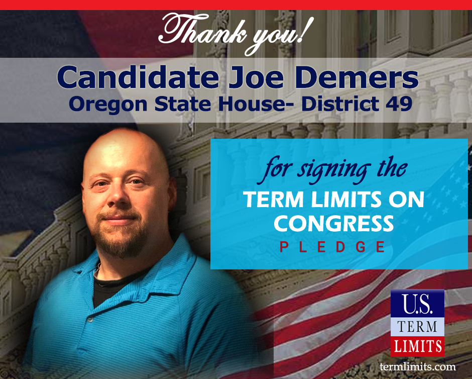 The U.S. Term Limits pledge is provided to candidates and members of state legislatures. It reads, “I pledge that, as a member of the state legislature, I will cosponsor, vote for, and defend the resolution applying for an Article V convention for the limited purpose of enacting term limits on Congress.”