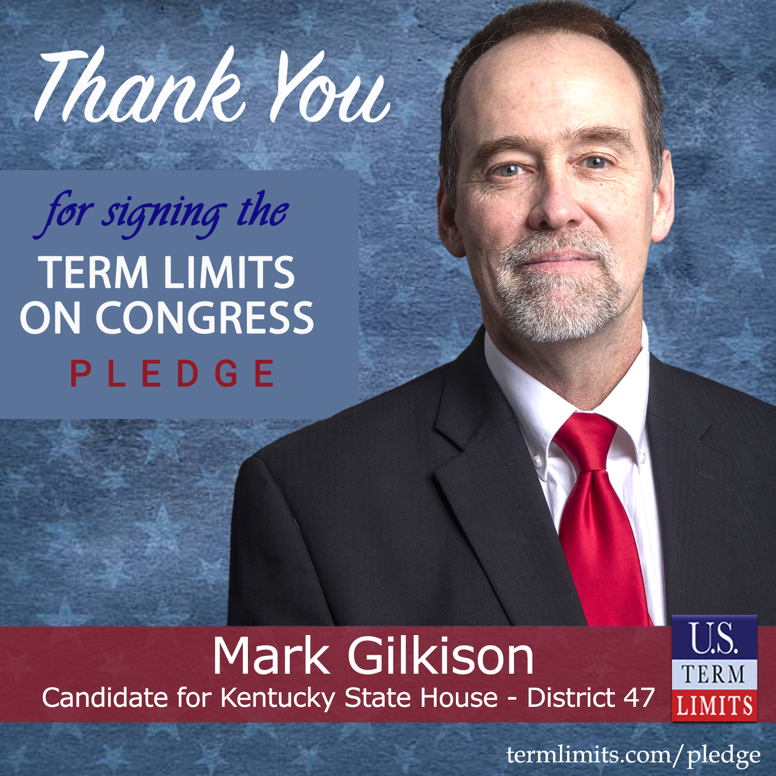 USTL President, Philip Blumel, commented on Gilkison’s pledge saying, “Mark’s strong support of term limits shows that there are individuals who are willing to listen to the majority of voters who want term limits. America needs a Congress that will be served by citizen legislators, not career politicians.”