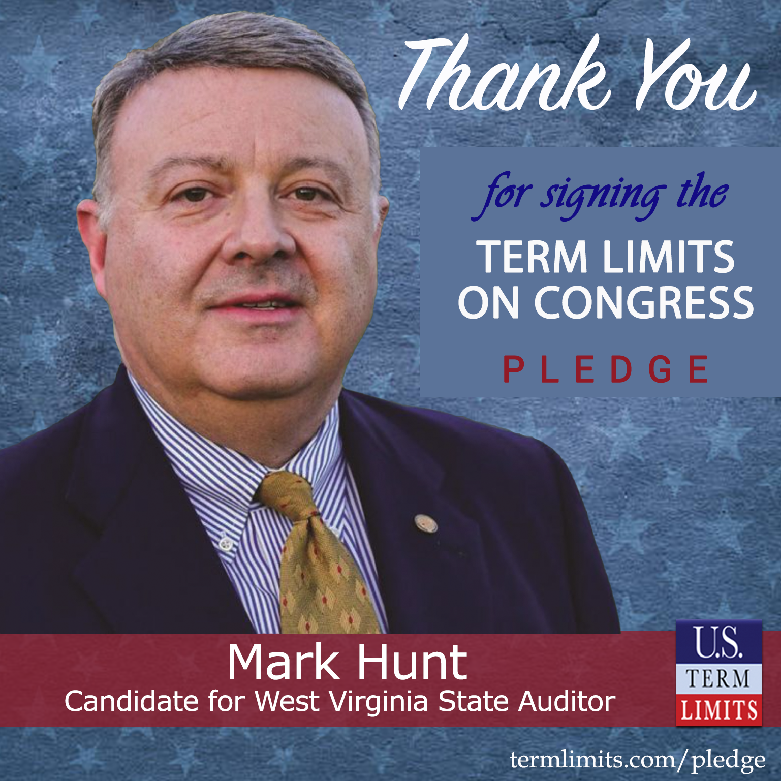 Charleston, WV – U.S. Term Limits (USTL), the leader in the national, non-partisan movement to limit terms for elected officials, is gathering support from state lawmakers across the nation. Its mission is to get 34 states to apply for an amendment proposal convention specific to term limits on Congress. West Virginia state auditor candidate, Mark Hunt, has committed support for term limits on Congress by signing the term limits convention pledge.