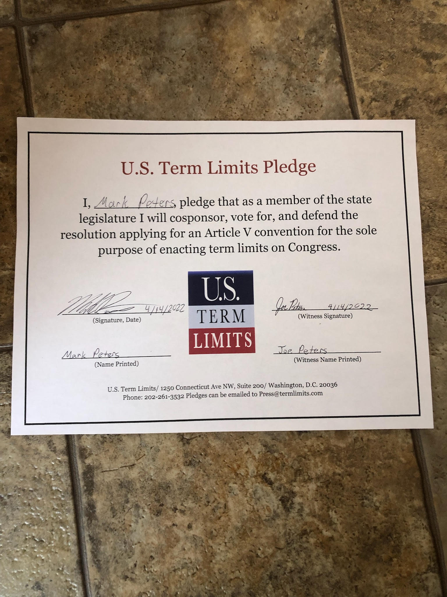Mark Peters Pledges to Support Congressional Term Limits