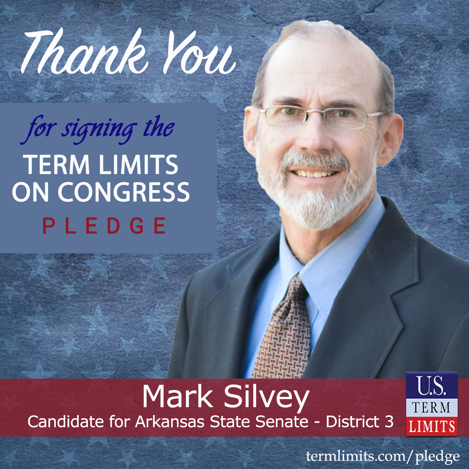 Little Rock, AR – U.S. Term Limits (USTL), the leader in the national, non-partisan movement to limit terms for elected officials, is gathering support from state lawmakers across the nation. Its mission is to get 34 states to apply for an amendment proposal convention specific to term limits on Congress. Arkansas state senate candidate, Mark Silvey (District 3), has committed support for term limits on Congress by signing the term limits convention pledge. Silvey is the first signer in this race.
