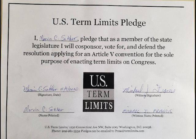 Washington, D.C. – U.S. Term Limits (USTL), the leader in the national, non-partisan movement to limit terms for elected officials, is gathering support from state lawmakers across the nation. Its mission is to get 34 states to apply for an amendment proposal convention specific to term limits on Congress. 2020 Montana state house candidate, Marv Sather (district 1), has committed support for term limits on Congress by signing the Term Limits Convention pledge.