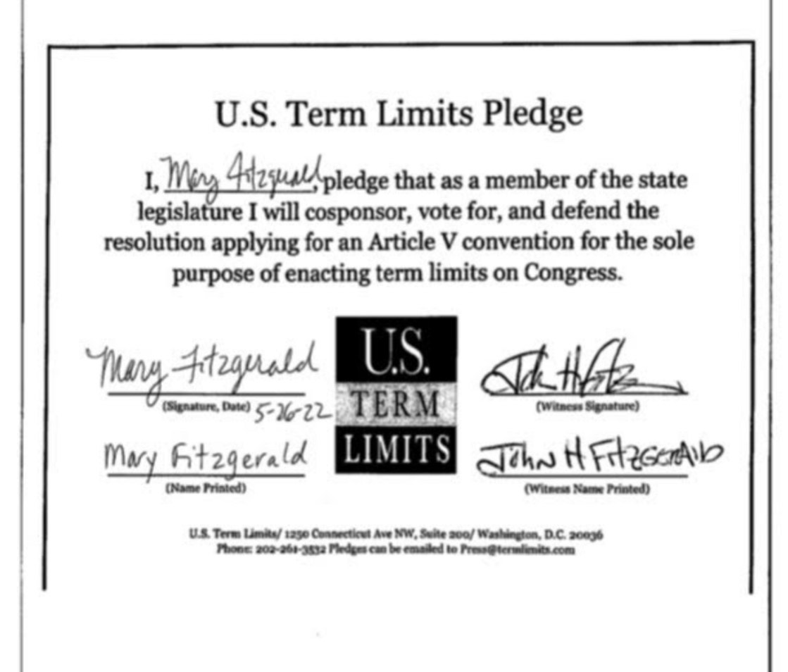 Rep. Mary Fitzgerald Pledges to Support Congressional Term Limits