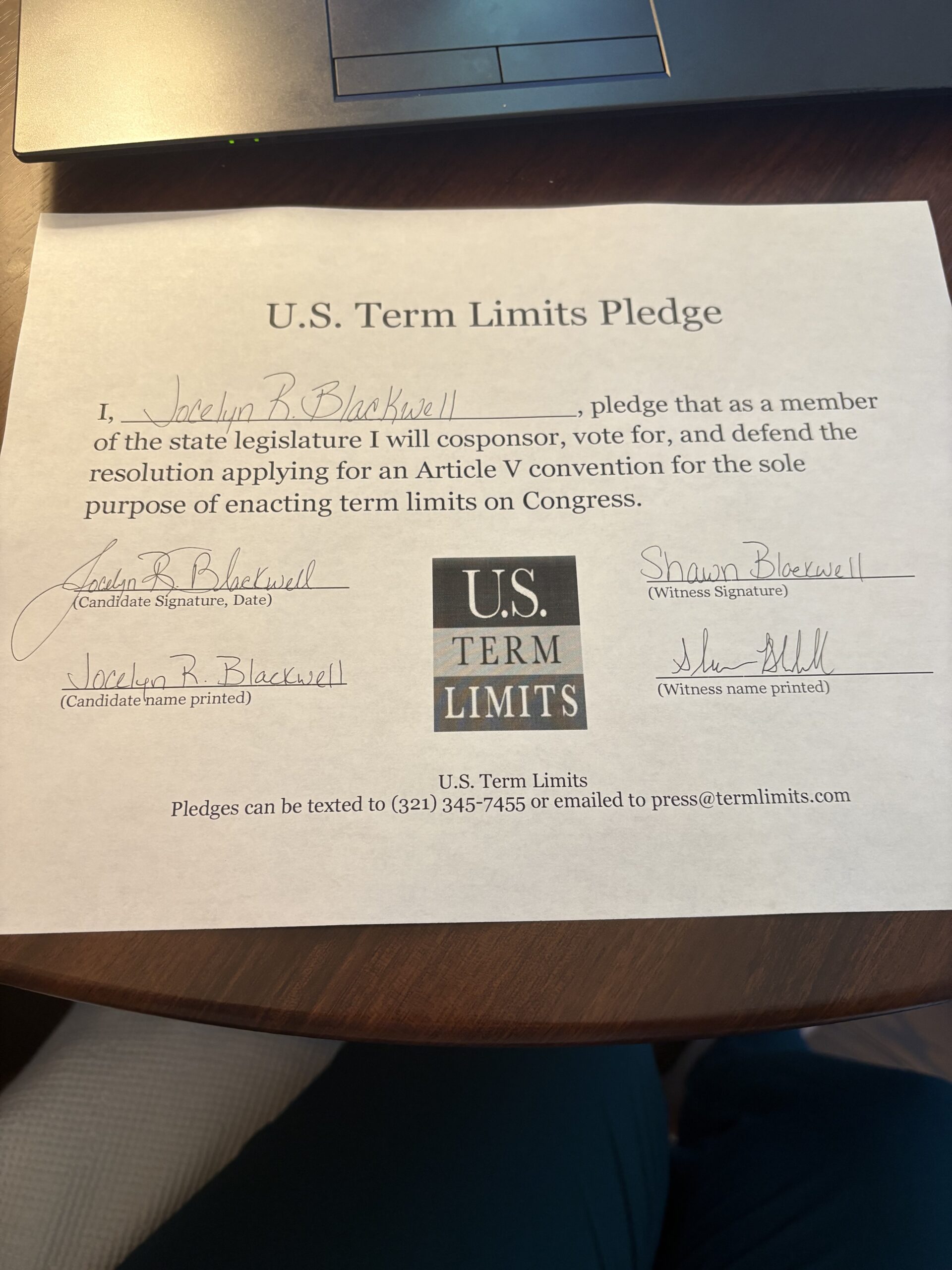Jocelyn Blackwell Pledges to Support Congressional Term Limits