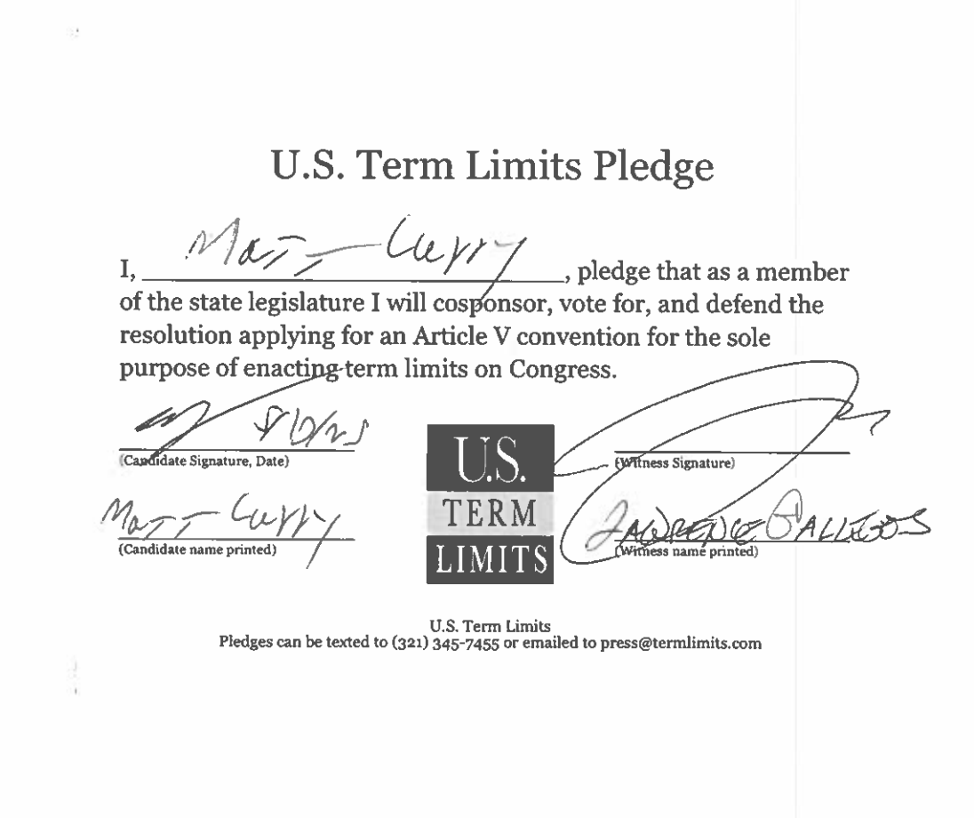 Matt Curry Pledges to Support Congressional Term Limits