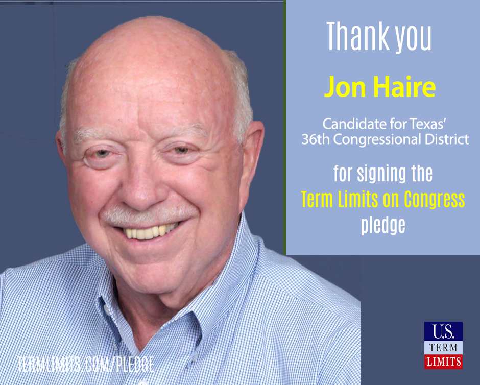 The U.S. Term Limits amendment pledge is provided to every announced candidate for federal office. It reads, “I pledge that as a member of Congress, I will cosponsor and vote for the U.S. Term Limits amendment of three (3) House terms and two (2) Senate terms and no longer limit.” The U.S. Term Limits constitutional amendment has been introduced in both the U.S. Senate by Senator Ted Cruz (SJR1) and the U.S. House by Representative Francis Rooney (HJR20).