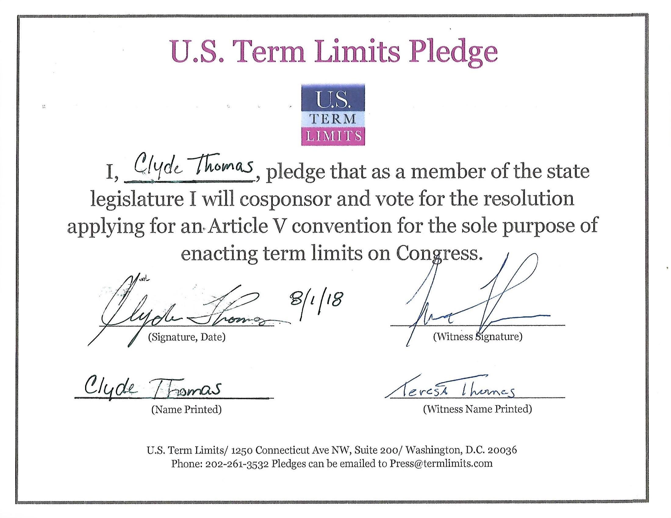 U.S. Term Limits Praises Clyde Thomas for Signing Pledge