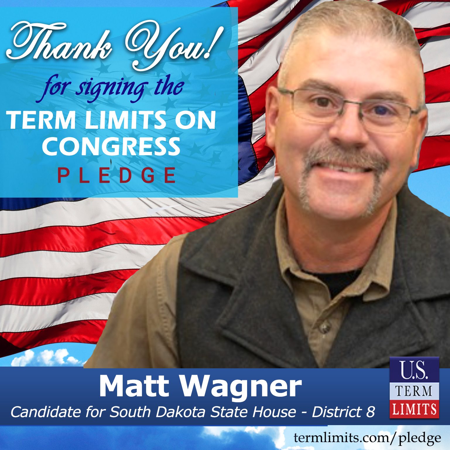 USTL President, Philip Blumel, commented on Wagner’s pledge saying, “Matt’s strong support of term limits shows that there are individuals who are willing to listen to the majority of voters who want term limits. America needs a Congress that will be served by citizen legislators, not career politicians.”
