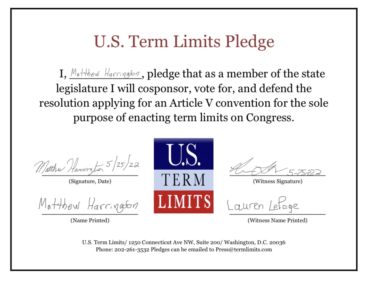 Rep. Matthew Harrington Pledges to Support Congressional Term Limits