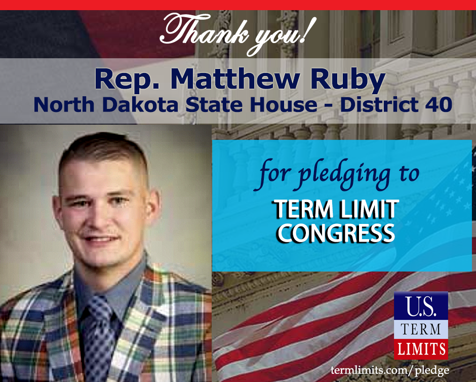 Washington, D.C. – U.S. Term Limits (USTL), the leader in the national, non-partisan movement to limit terms for elected officials, is gathering support from state lawmakers across the nation. Its mission is to get 34 states to apply for an amendment proposal convention specific to term limits on Congress. 2020 North Dakota state Rep. Matthew Ruby (district 40), has committed support for term limits on Congress by signing the Term Limits Convention pledge.