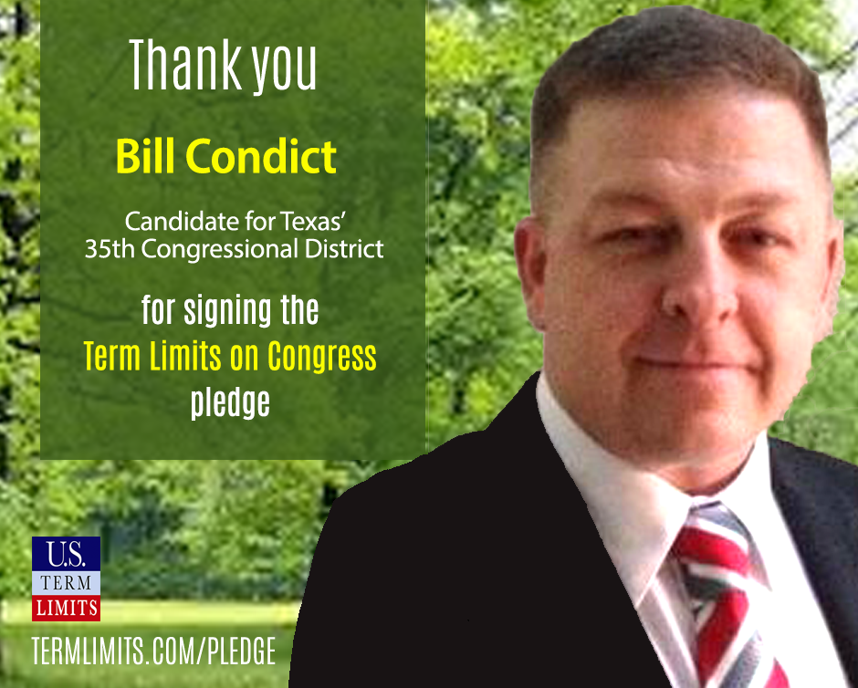The U.S. Term Limits pledge is provided to candidates and members of state legislatures. It reads, “I pledge that, as a member of the state legislature, I will cosponsor, vote for, and defend the resolution applying for an Article V convention for the limited purpose of enacting term limits on Congress.”