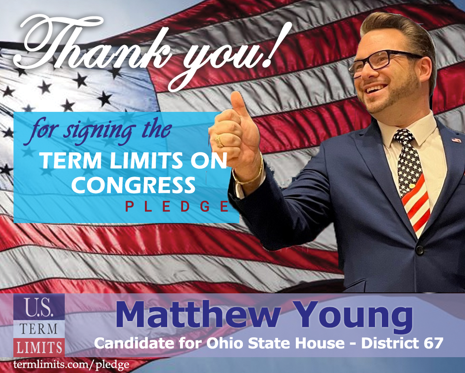 Salem, OH – U.S. Term Limits (USTL), the leader in the national, non-partisan movement to limit terms for elected officials, is gathering support from state lawmakers across the nation. Its mission is to get 34 states to apply for an amendment proposal convention specific to term limits on Congress. Ohio state house candidate, Matthew Young (district 67) has committed support for term limits on Congress by signing the Term Limits Convention pledge. Young is the first signer in this race.