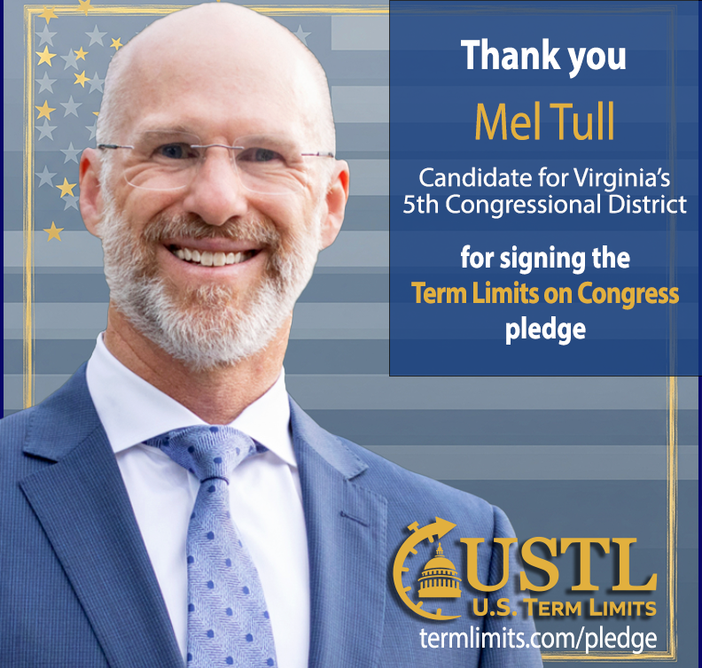 Washington D.C. – U.S. Term Limits (USTL), the leader in the non-partisan national movement to limit terms for elected officials, praises 2022 U.S. house candidate for Virginia, Mel Tull (district 5), for signing the pledge for an amendment to term limit Congress. Previously, candidate Bob Good also signed.