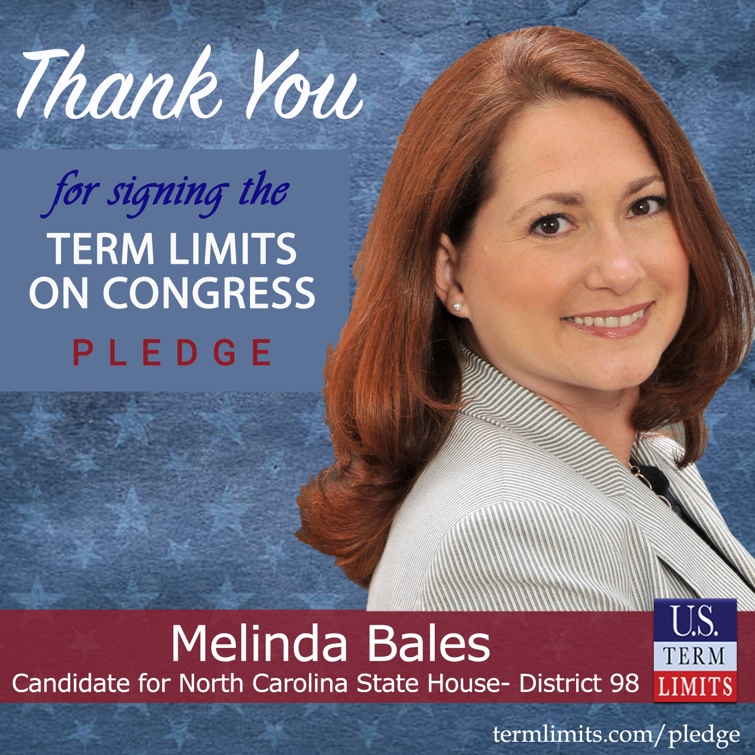 Davidson, NC – U.S. Term Limits (USTL), the leader in the national, non-partisan movement to limit terms for elected officials, is gathering support from state lawmakers across the nation. Its mission is to get 34 states to apply for an amendment proposal convention specific to term limits on Congress. North Carolina state house candidate, Melinda Bales (District 98), has committed support for term limits on Congress by signing the term limits convention pledge. Bales is the first signer in this race.
