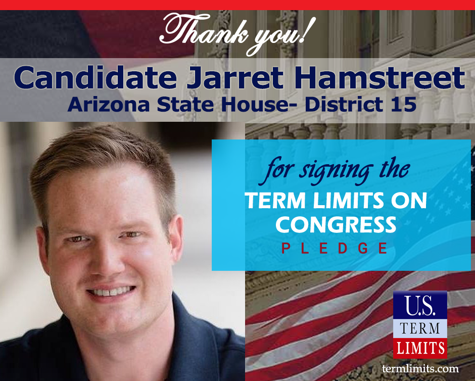 The U.S. Term Limits pledge is provided to candidates and members of state legislatures. It reads, “I pledge that, as a member of the state legislature, I will cosponsor, vote for, and defend the resolution applying for an Article V convention for the limited purpose of enacting term limits on Congress.”