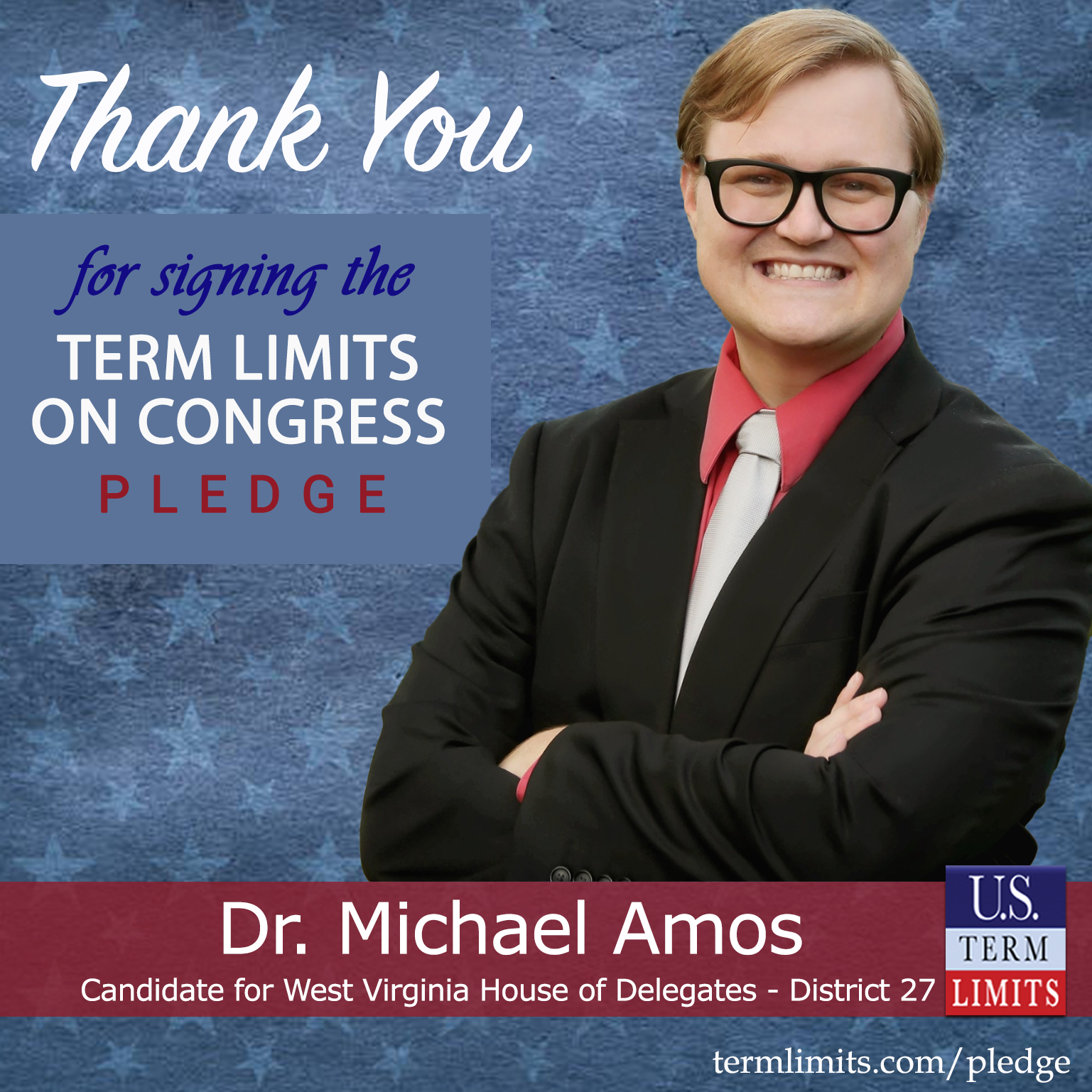 Ceredo, WV – U.S. Term Limits (USTL), the leader in the national, non-partisan movement to limit terms for elected officials, is gathering support from state lawmakers across the nation. Its mission is to get 34 states to apply for an amendment proposal convention specific to term limits on Congress. West Virginia house of delegates candidate (district 27), Michael Amos, has committed support for term limits on Congress by signing the term limits convention pledge.