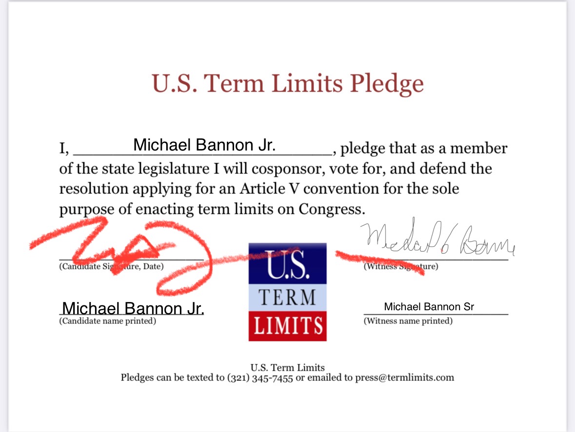 Michael Bannon Jr. Pledges to Support Congressional Term Limits