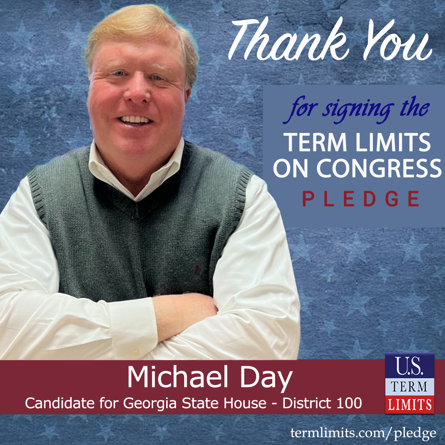 Buford, GA – U.S. Term Limits (USTL), the leader in the national, non-partisan movement to limit terms for elected officials, is gathering support from state lawmakers across the nation. Its mission is to get 34 states to apply for an amendment proposal convention specific to term limits on Congress. Georgia state house candidate, Michael Day (District 100), has committed support for term limits on Congress by signing the term limits convention pledge. Rep. David Clark also signed the pledge.
