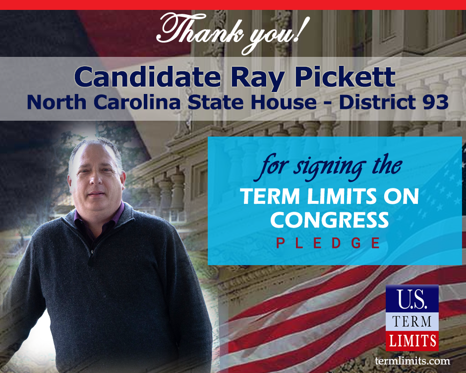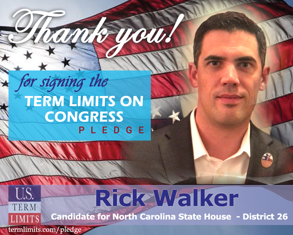 The U.S. Term Limits amendment pledge is provided to every announced candidate for federal office. It reads, “I pledge that as a member of Congress, I will cosponsor and vote for the U.S. Term Limits amendment of three (3) House terms and two (2) Senate terms and no longer limit.”