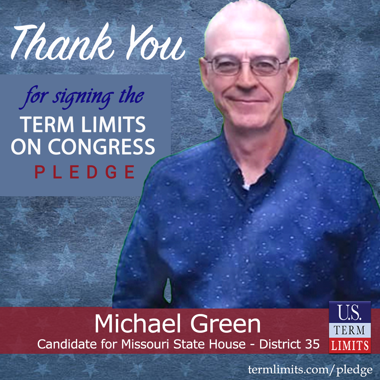 Lee’s Summit, MO– U.S. Term Limits (USTL), the leader in the national, non-partisan movement to limit terms for elected officials, is gathering support from state lawmakers across the nation. Its mission is to get 34 states to apply for an amendment proposal convention specific to term limits on Congress. Missouri state house candidate, Michael Green (district 35), has committed support for term limits on Congress by signing the term limits convention pledge.