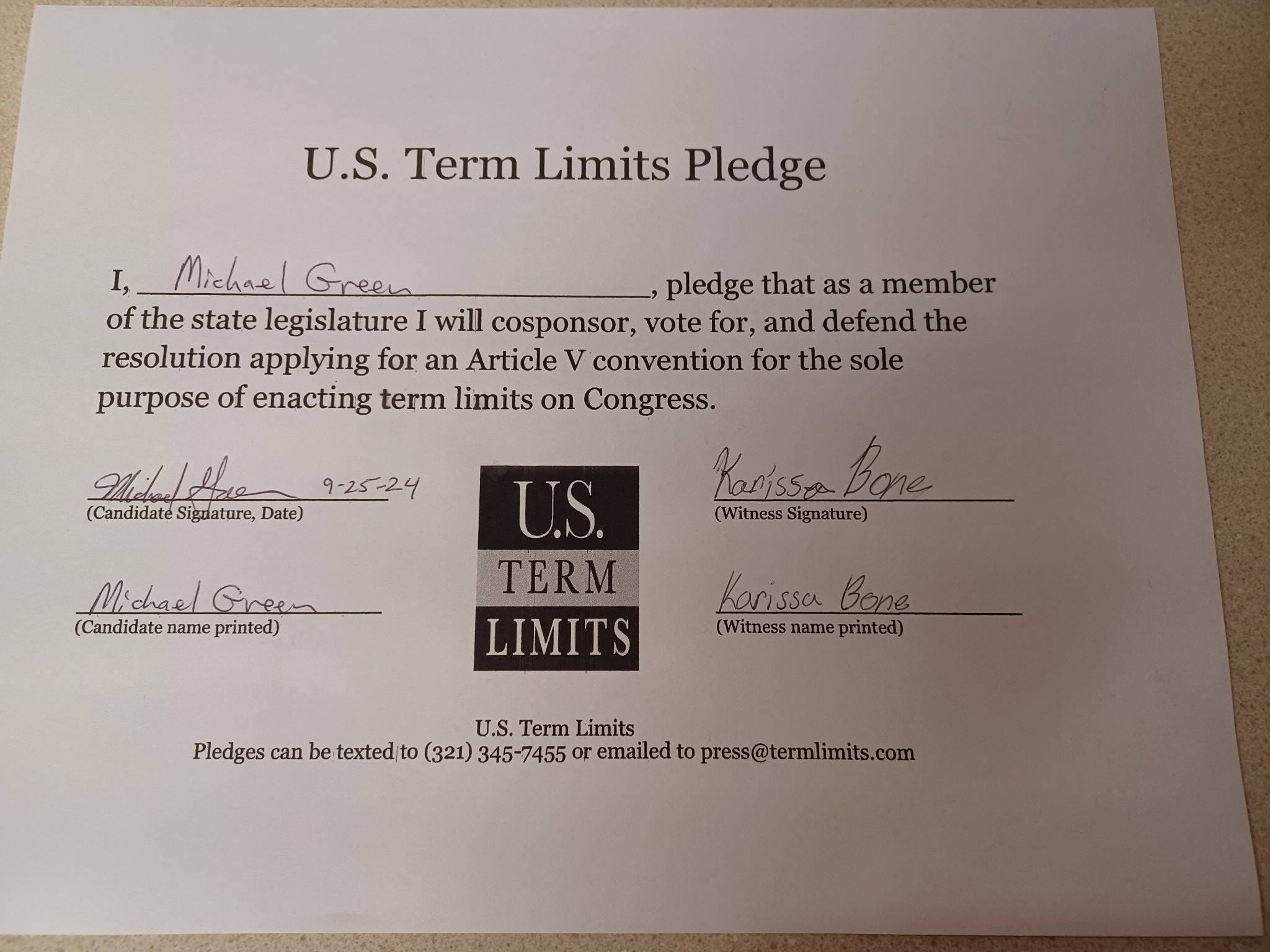 Michael Green Pledges to Support Congressional Term Limits