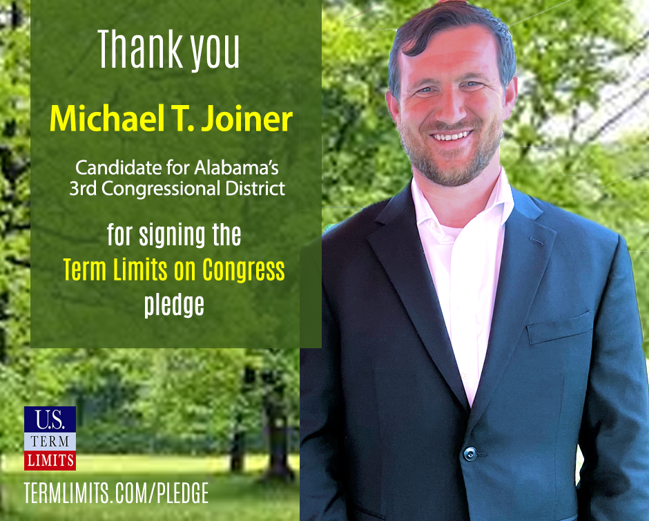 Washington D.C. – U.S. Term Limits (USTL), the leader in the non-partisan national movement to limit terms for elected officials, praises 2022 U.S. house candidate for Alabama (district 3), Michael Joiner, for signing the pledge for an amendment to term limit Congress. Previously, candidate Doug Bell also signed the pledge.