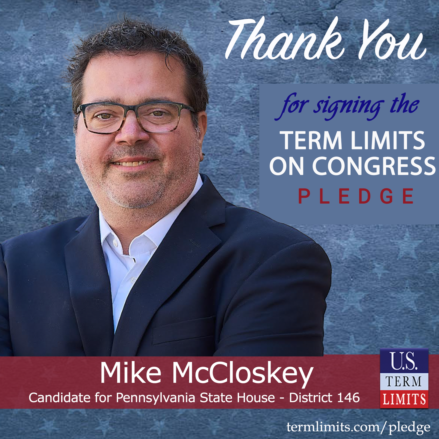 Pottstown, PA – U.S. Term Limits (USTL), the leader in the national, non-partisan movement to limit terms for elected officials, is gathering support from state lawmakers across the nation. Its mission is to get 34 states to apply for an amendment proposal convention specific to term limits on Congress. Pennsylvania state house candidate, Michael McCloskey (District 146), has committed support for term limits on Congress by signing the term limits convention pledge.