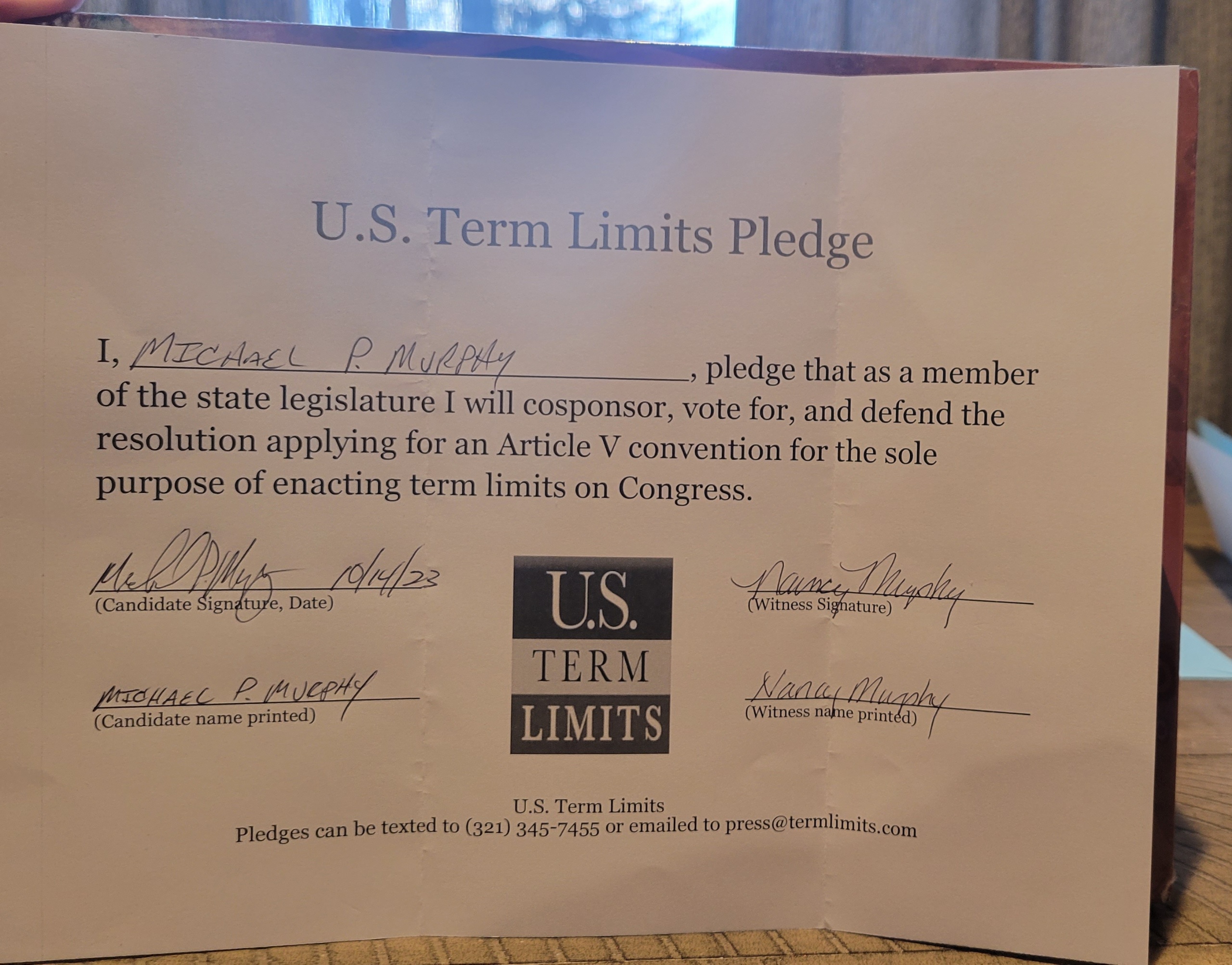 Michael Murphy Pledges to Support Congressional Term Limits