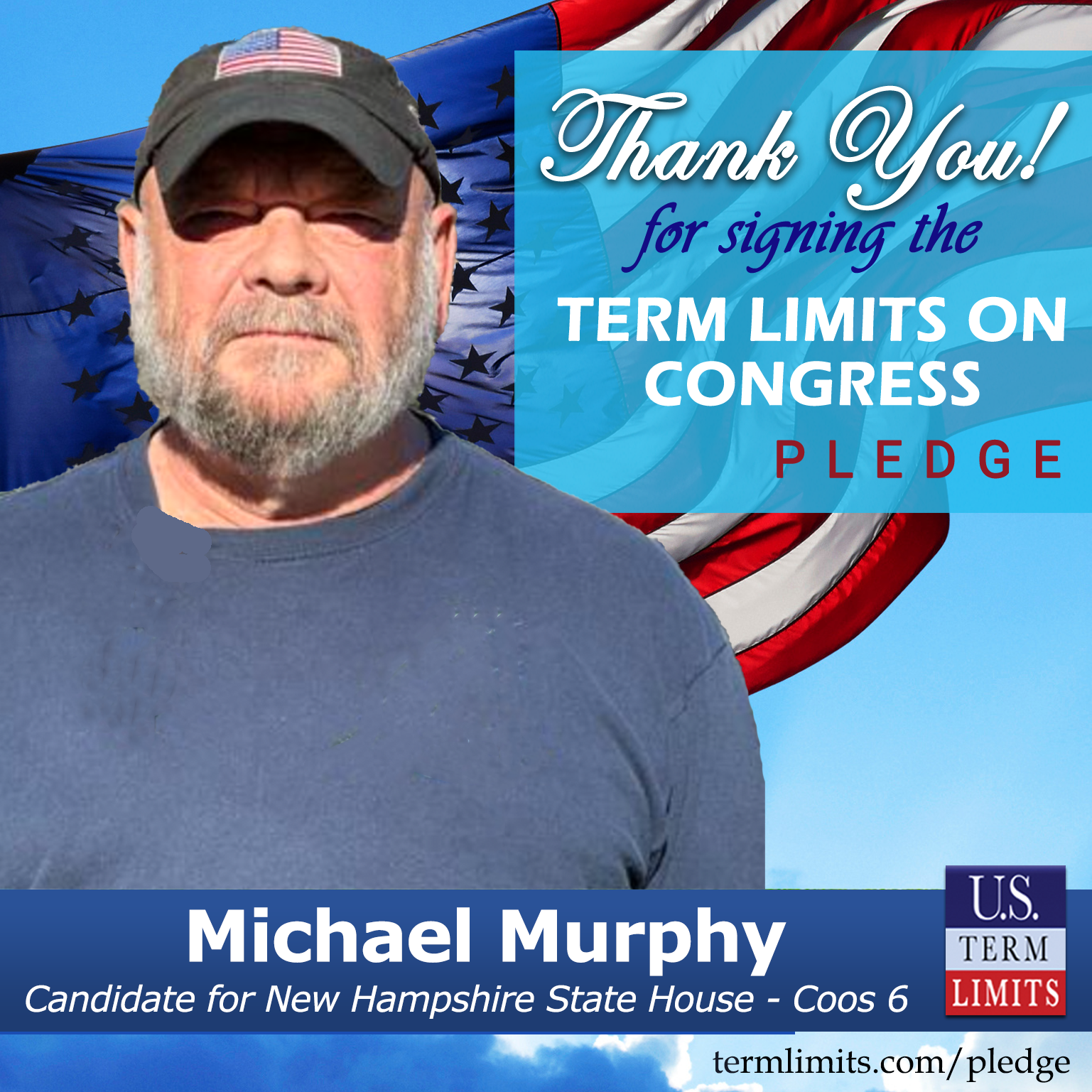 Gorham, NH – U.S. Term Limits (USTL), the leader in the national, non-partisan movement to limit terms for elected officials, is gathering support from state lawmakers across the nation. Its mission is to get 34 states to apply for an amendment proposal convention specific to term limits on Congress. New Hampshire state house candidate, Michael Murphy (Coos 6), has committed support for term limits on Congress by signing the Term Limits Convention Pledge. A special election is scheduled for January 23, 2024.