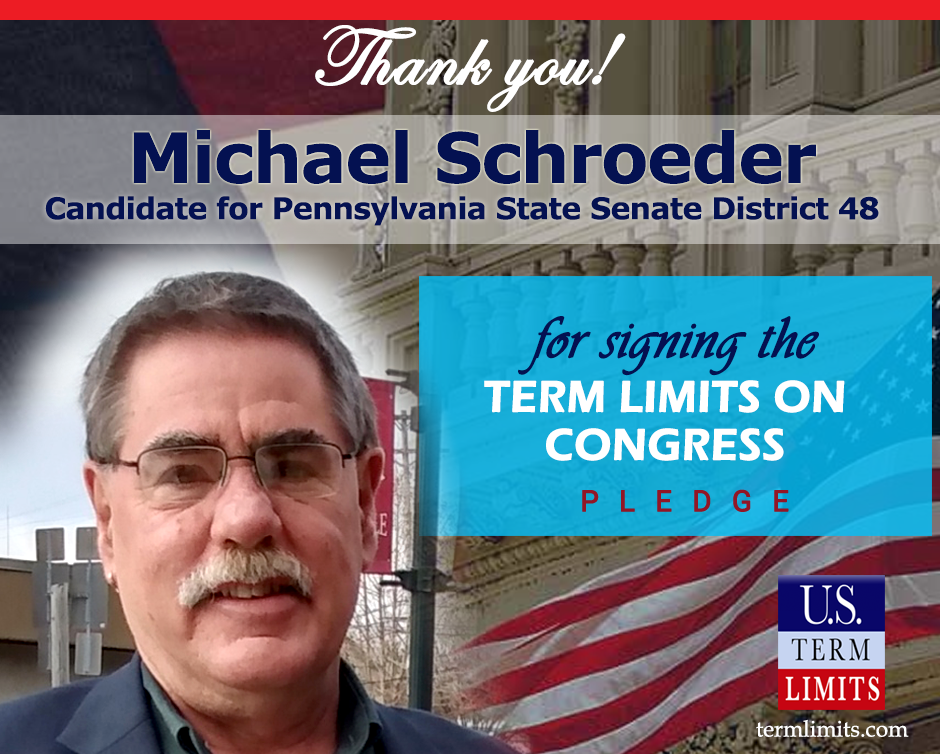 Washington, D.C. – U.S. Term Limits (USTL), the leader in the national, non-partisan movement to limit terms for elected officials, is gathering support from state lawmakers across the nation. Its mission is to get 34 states to apply for an amendment proposal convention specific to term limits on Congress. 2020 Pennsylvania state special election candidate, Michael Schroeder, (district 48), has committed support for term limits on Congress by signing the Term Limits Convention pledge. The special election is scheduled for January 14, 2020.