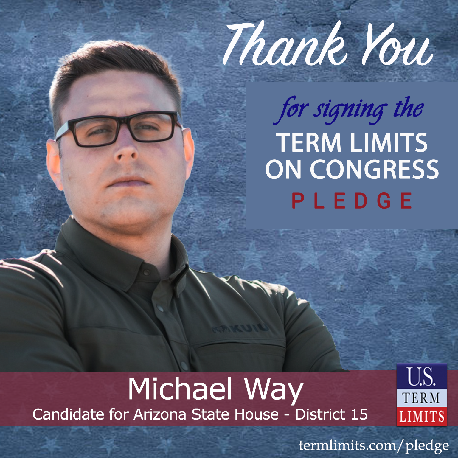 San Tan Valley, AZ – U.S. Term Limits (USTL), the leader in the national, non-partisan movement to limit terms for elected officials, is gathering support from state lawmakers across the nation. Its mission is to get 34 states to apply for an amendment proposal convention specific to term limits on Congress. Arizona state house candidate, Michael Way (District 15), has committed support for term limits on Congress by signing the Term Limits Convention Pledge. Previously, candidates Alex Stovall, Neal Carter and Peter Anello also signed the pledge.