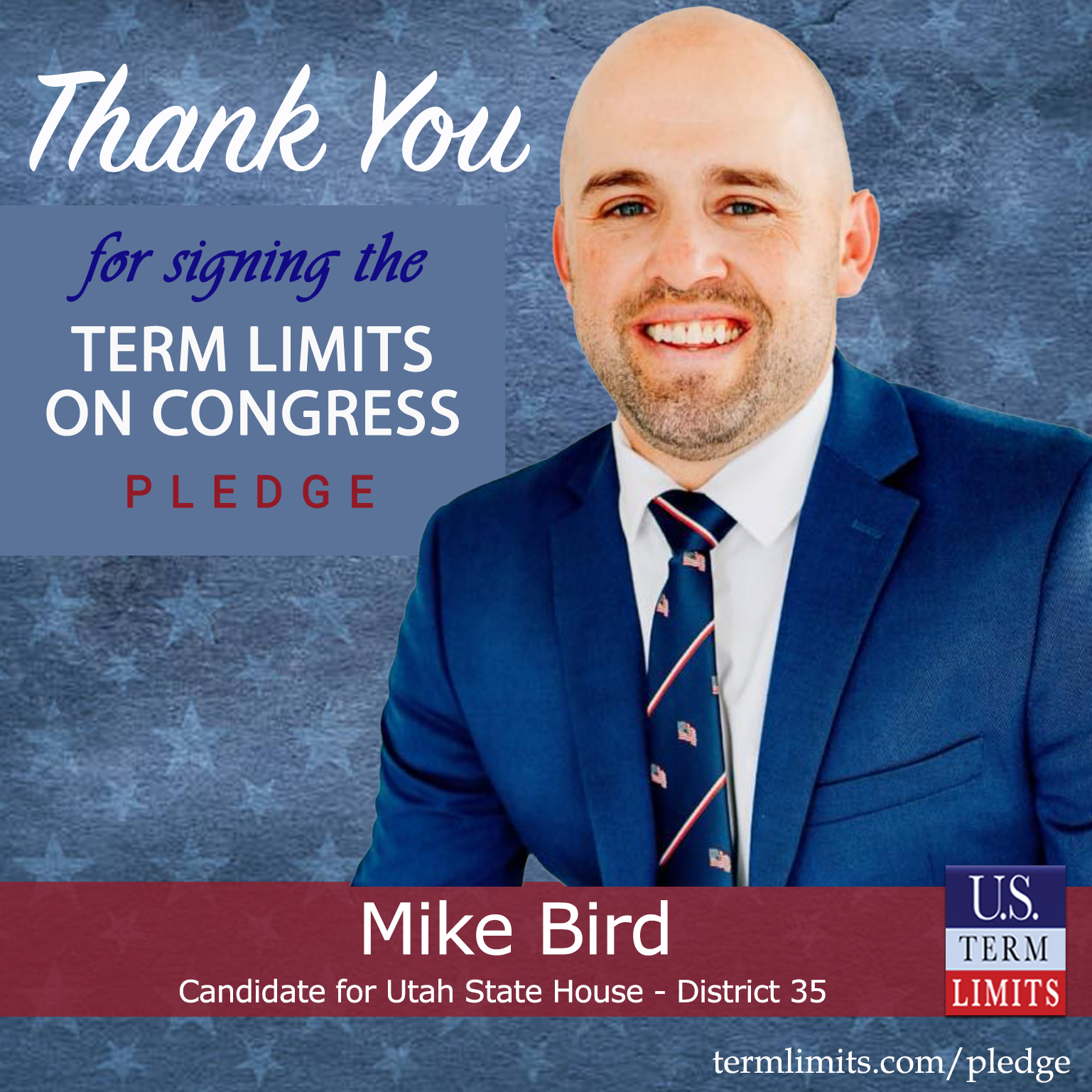 Salt Lake City, UT – U.S. Term Limits (USTL), the leader in the national, non-partisan movement to limit terms for elected officials, is gathering support from state lawmakers across the nation. Its mission is to get 34 states to apply for an amendment proposal convention specific to term limits on Congress. Utah state house candidate, Mike Bird (District 35), has committed support for term limits on Congress by signing the Term Limits Convention Pledge.