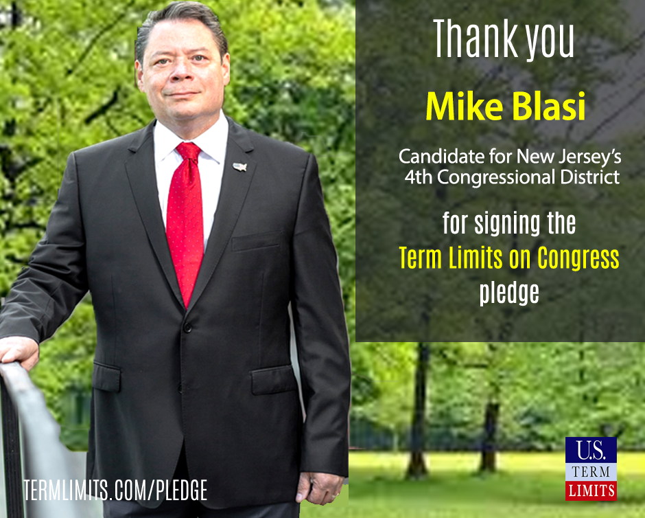 Washington D.C. – U.S. Term Limits (USTL), the leader in the non-partisan national movement to limit terms for elected officials, praises 2022 U.S. house candidate for New Jersey, Mike Blasi (district 4), for signing the pledge for an amendment to term limit Congress. Previously, candidate David Burg also signed the pledge.