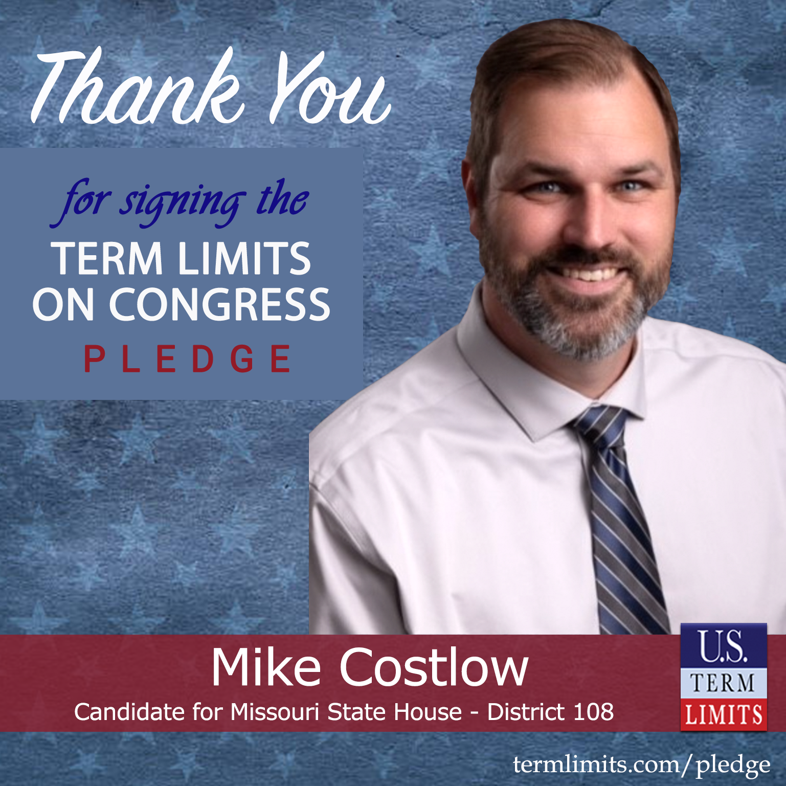 Jefferson City, MO– U.S. Term Limits (USTL), the leader in the national, non-partisan movement to limit terms for elected officials, is gathering support from state lawmakers across the nation. Its mission is to get 34 states to apply for an amendment proposal convention specific to term limits on Congress. Missouri state house candidate, Mike Costlow (District 108), has committed support for term limits on Congress by signing the Term Limits Convention Pledge.