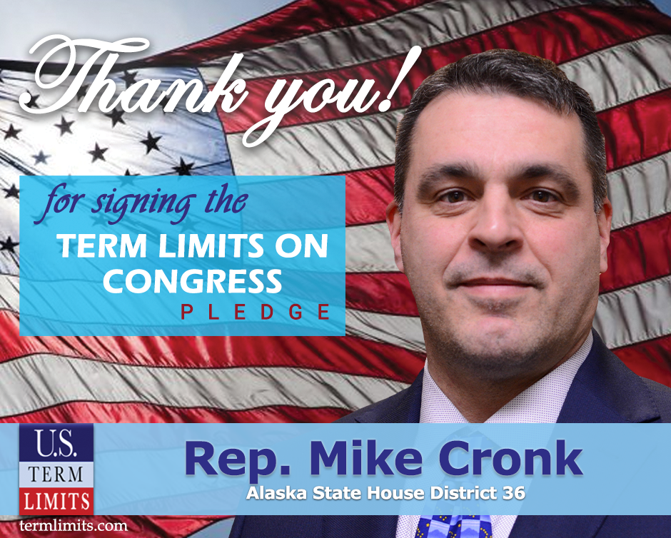 Juneau, AK – Alaska state house Representative Mike Cronk (district 36) has committed support for term limits on Congress by signing the term limits convention pledge. U.S. Term Limits (USTL), the leader in the national, non-partisan movement to limit terms for elected officials, is garnering commitments from state lawmakers across the nation. Its mission is to get 34 states to apply for an amendment proposal convention specific to term limits on Congress.
