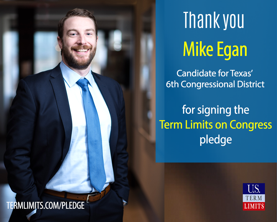 Washington D.C. – U.S. Term Limits (USTL), the leader in the non-partisan national movement to limit terms for elected officials, praises 2021 U.S. house candidate for Texas, Mike Egan (district 6), for signing the pledge for an amendment to term limit Congress. Egan is the first signer in this race. The special general election is scheduled for May 1, 2021.