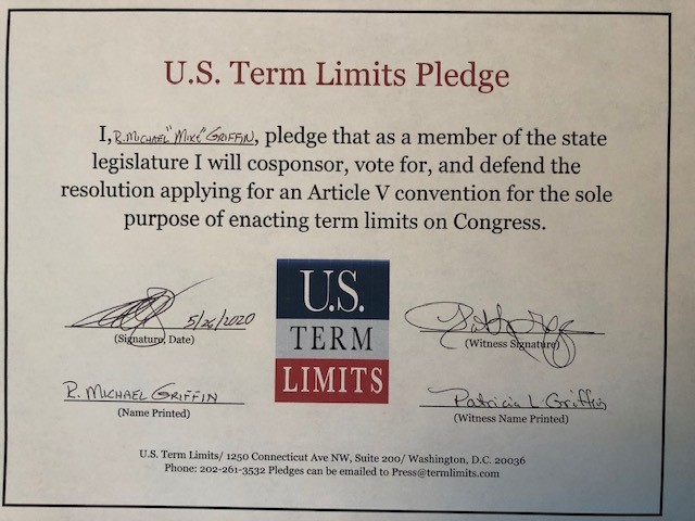 Washington, D.C. – U.S. Term Limits (USTL), the leader in the national, non-partisan movement to limit terms for elected officials, is gathering support from state lawmakers across the nation. Its mission is to get 34 states to apply for an amendment proposal convention specific to term limits on Congress. 2020 Indiana state house candidate Mike Griffin (district 75), has committed support for term limits on Congress by signing the Term Limits Convention pledge. Previously, candidate Cindy Ledbetter also signed the pledge. The primary election is scheduled for June 2, 2020.