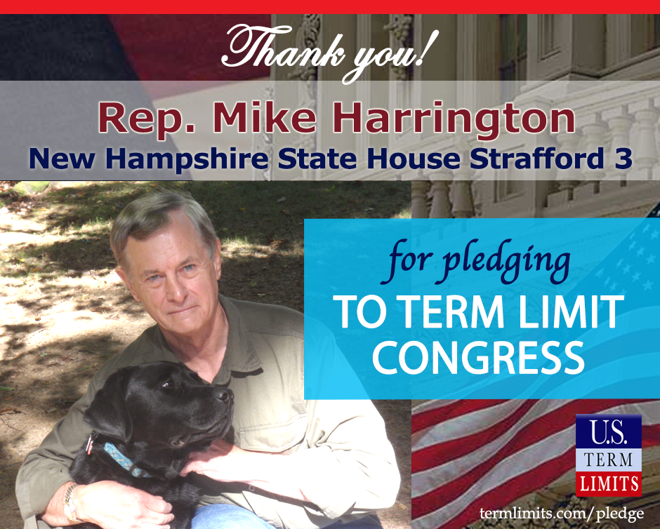 Manchester, NH – U.S. Term Limits (USTL), the leader in the national, non-partisan movement to limit terms for elected officials, is gathering support from state lawmakers across the nation. Its mission is to get 34 states to apply for an amendment proposal convention specific to term limits on Congress. New Hampshire state house candidate, Mike Harrington (Strafford 3), has committed support for term limits on Congress by signing the Term Limits Convention pledge.