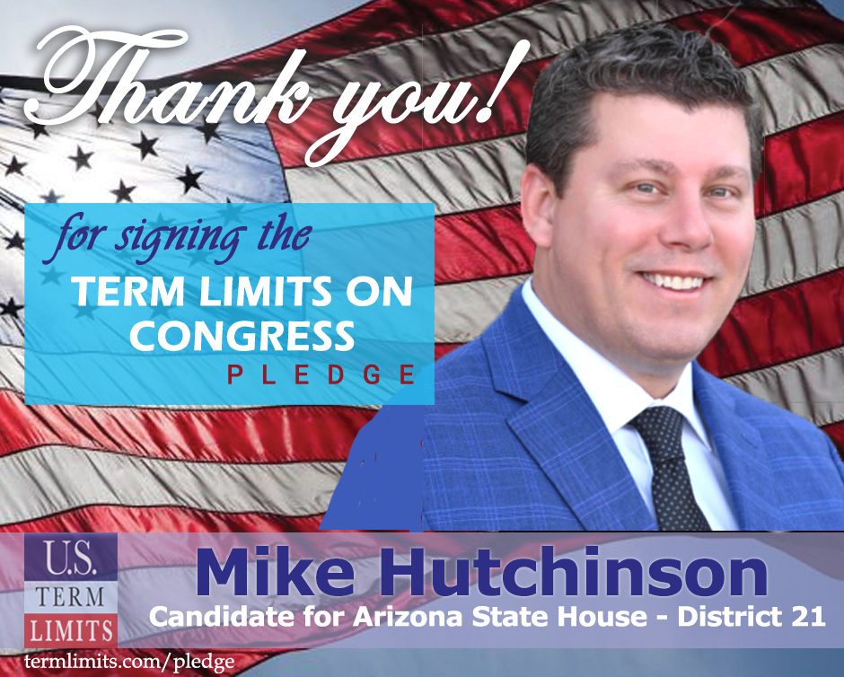 Phoenix, AZ – U.S. Term Limits (USTL), the leader in the national, non-partisan movement to limit terms for elected officials, is gathering support from state lawmakers across the nation. Its mission is to get 34 states to apply for an amendment proposal convention specific to term limits on Congress. Arizona state house candidate, Mike Hutchinson (district 21) has committed support for term limits on Congress by signing the Term Limits Convention pledge.