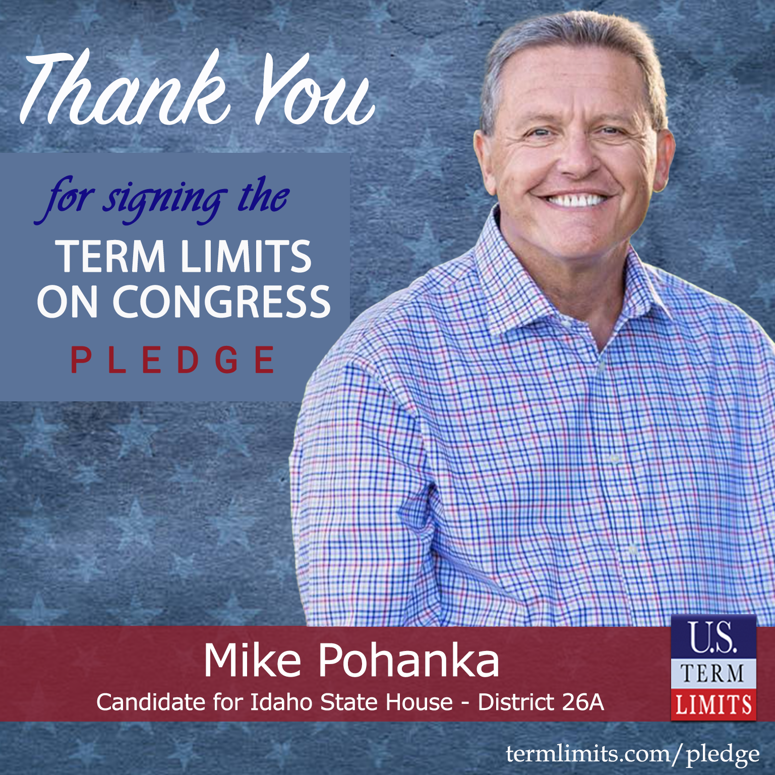 Bellevue, ID – U.S. Term Limits (USTL), the leader in the national, non-partisan movement to limit terms for elected officials, is gathering support from state lawmakers across the nation. Its mission is to get 34 states to apply for an amendment proposal convention specific to term limits on Congress. Idaho state house candidate, Mike Pohanka (district 26A), has committed support for term limits on Congress by signing the term limits convention pledge. He is the first signer in this race.